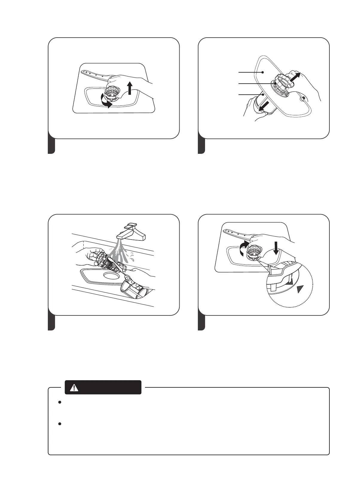 Never use the dishwasher without filters in place. Improper replacement of