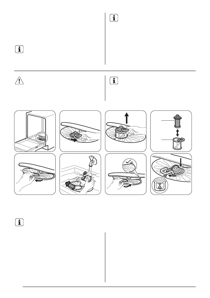 An incorrect position of the filters can cause bad washing results and damage to the appliance