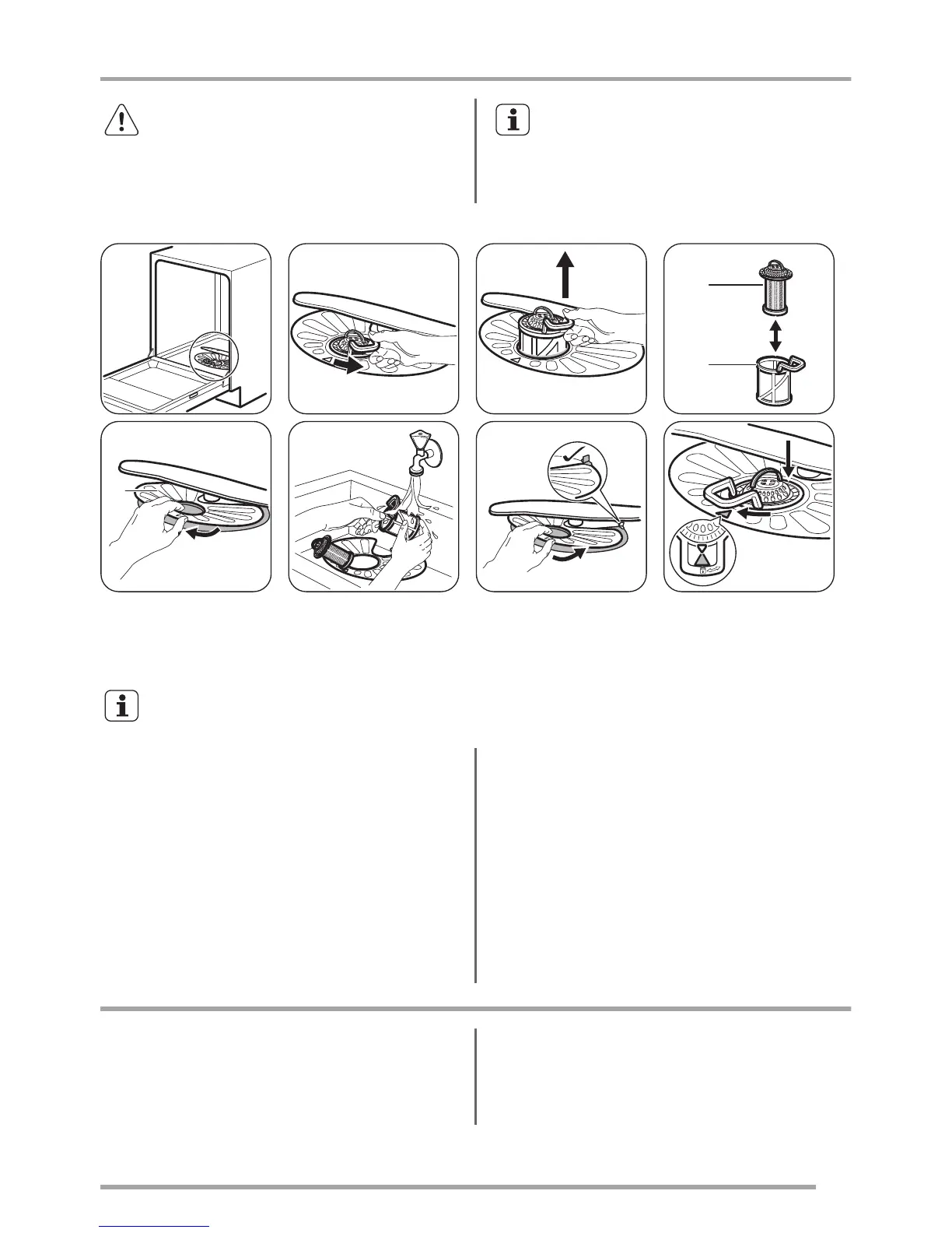 An incorrect position of the filters can cause bad washing results and damage to the appliance