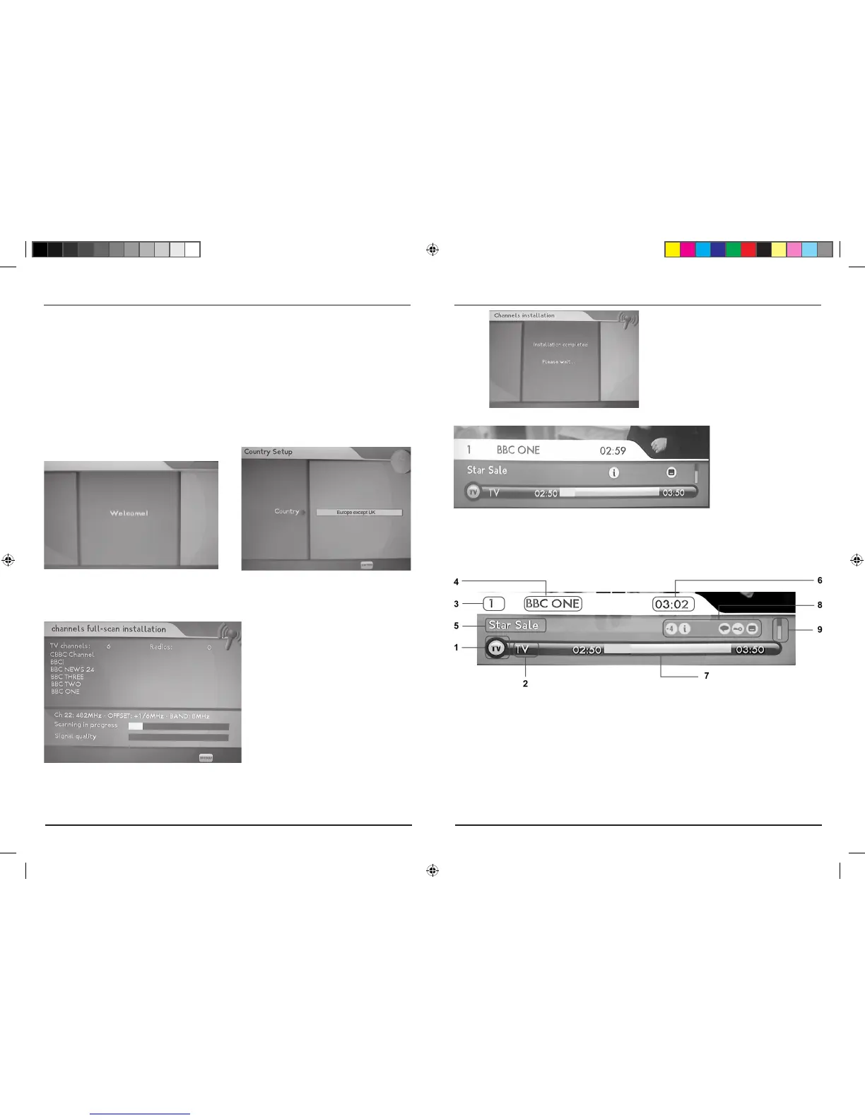 Screen 1 : Welcome screen Screen 2 : Country setup screen