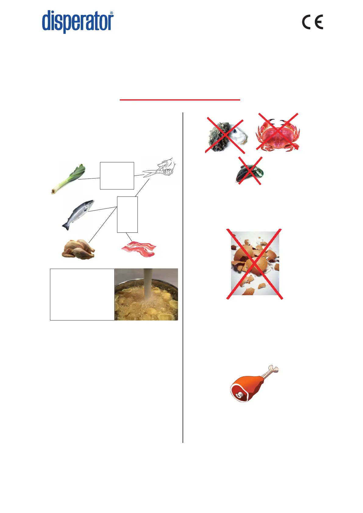 oysters, crabs etc.) must not be fed into the