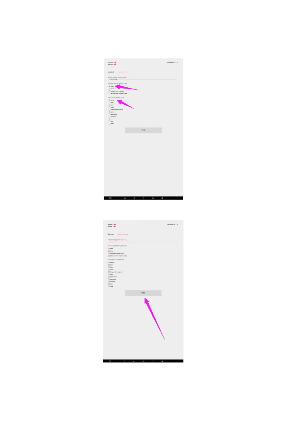 time. Select how you would like the images to display. Select the desired transition effect between pictures.