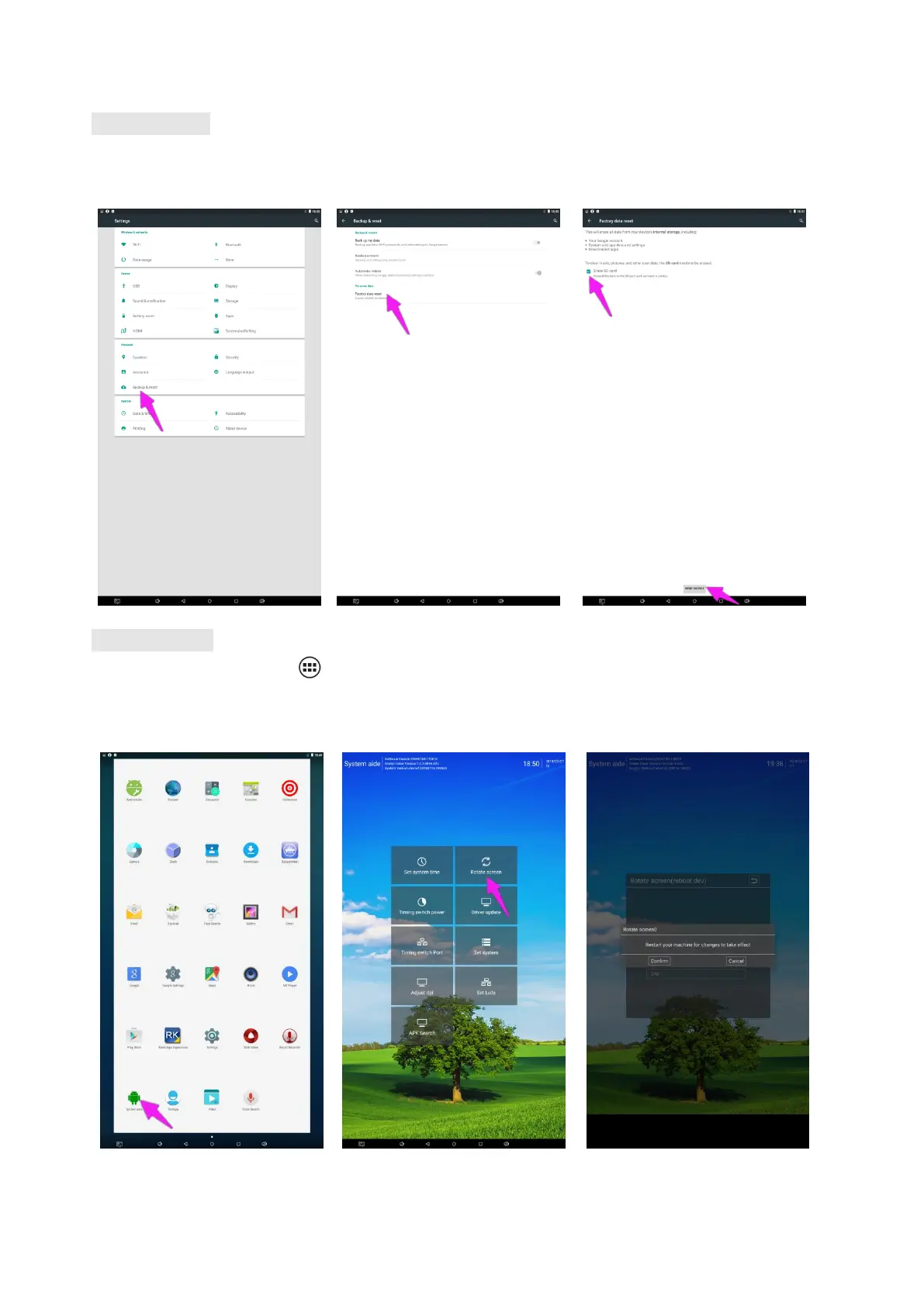 3. Choose the degree you would like to Rotate screen, then click “Confirm”, after the restart, the screen will be