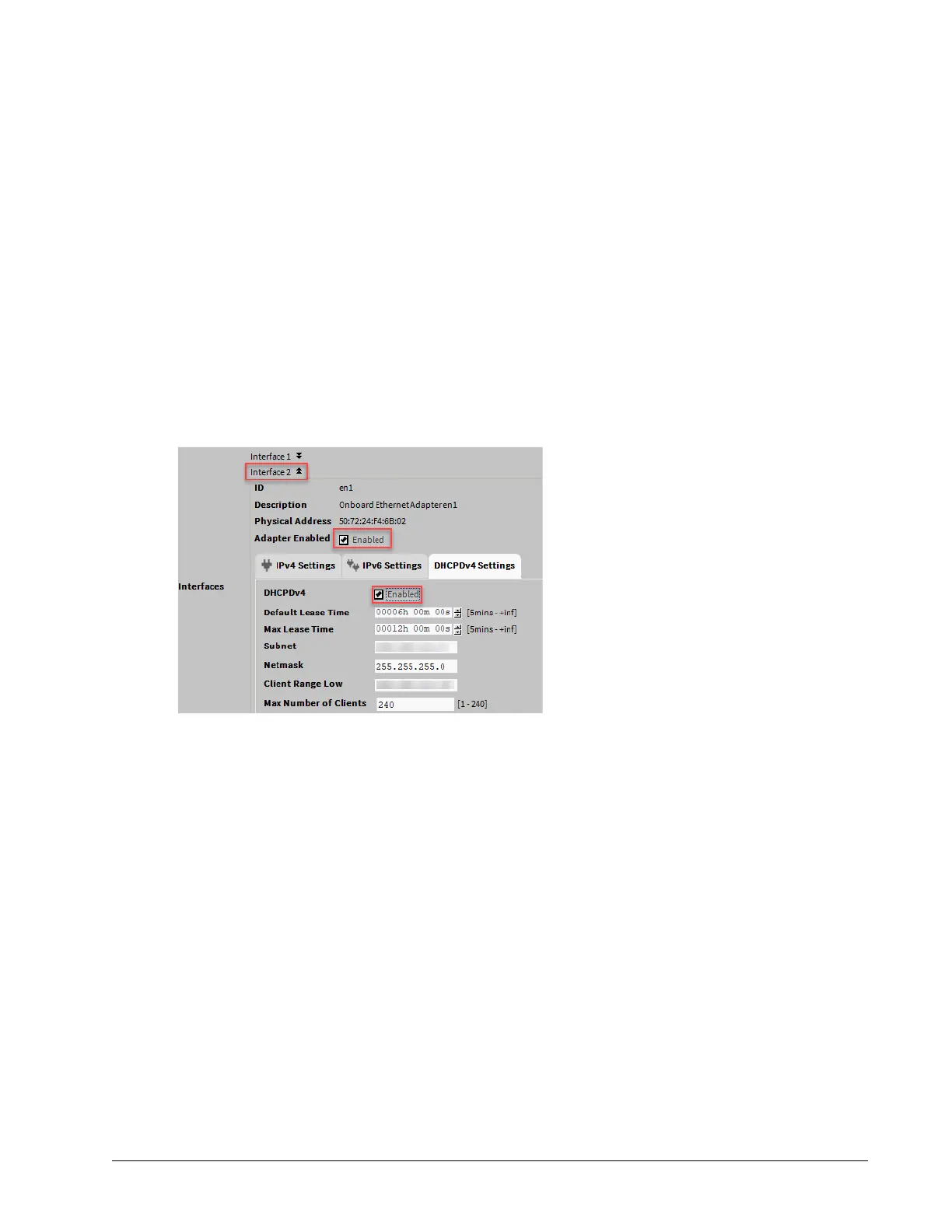 Make sure that the secondary Ethernet port’s (Interface 2) IP address is outside the DHCP server’s