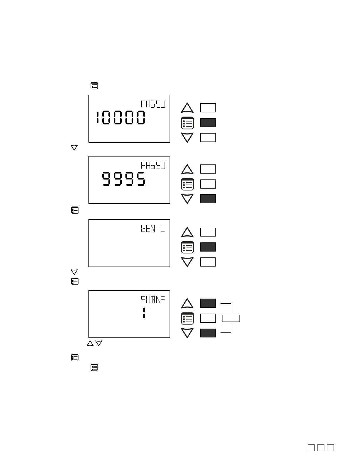 2. Press and hold the Menu button for 5 seconds to enter the password menu. 10000 is shown on the display.