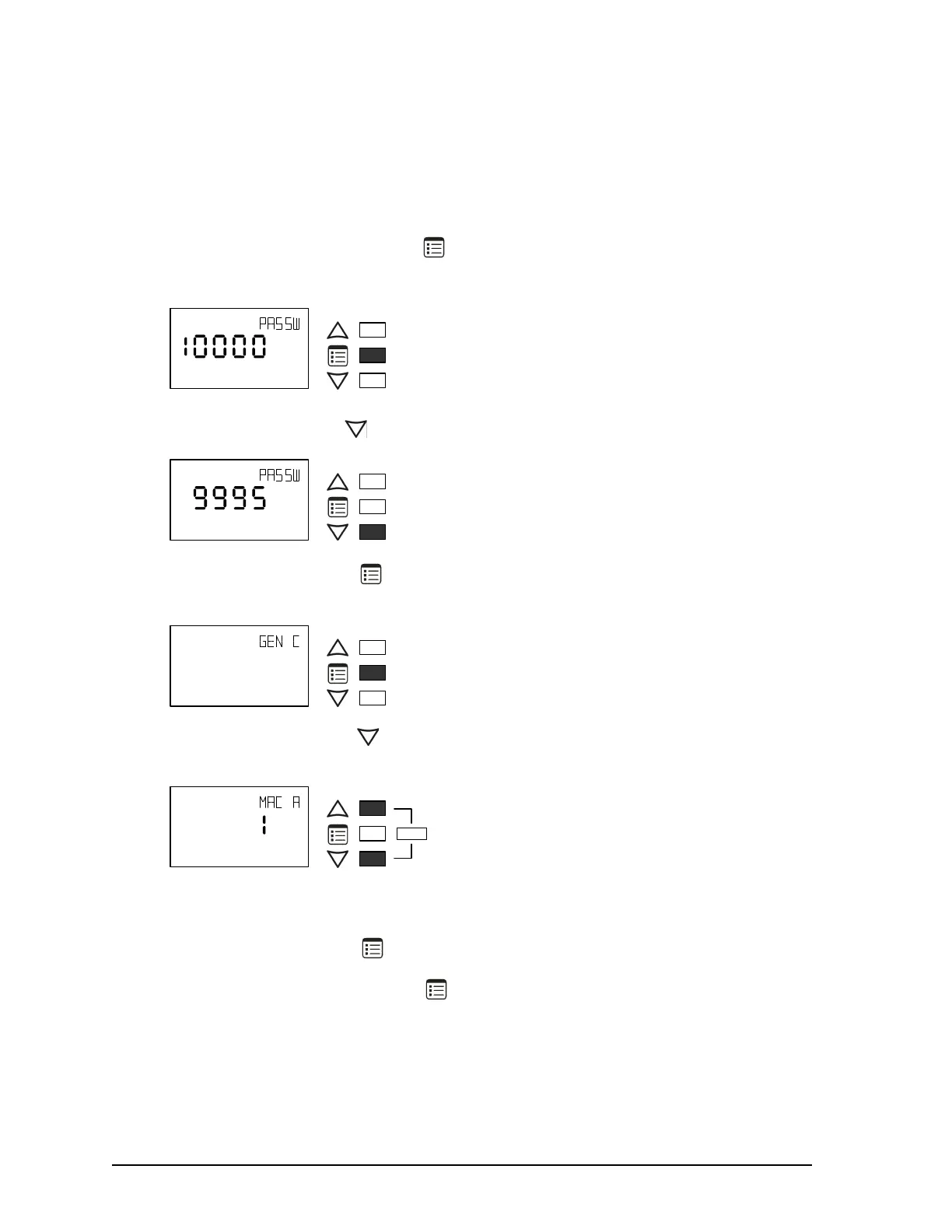 2. Press and hold the Menu button for 5 seconds to enter the password menu. 10000 is
