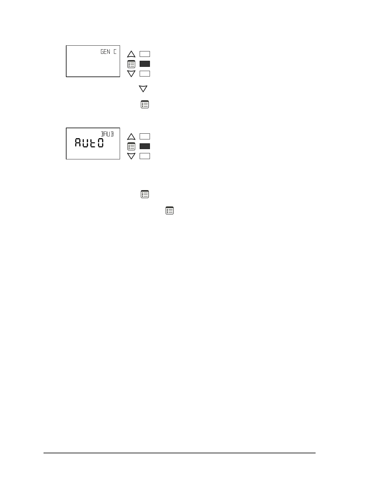 7. Use the up and down buttons to set the controller's baud rate. AUTO detects and uses the