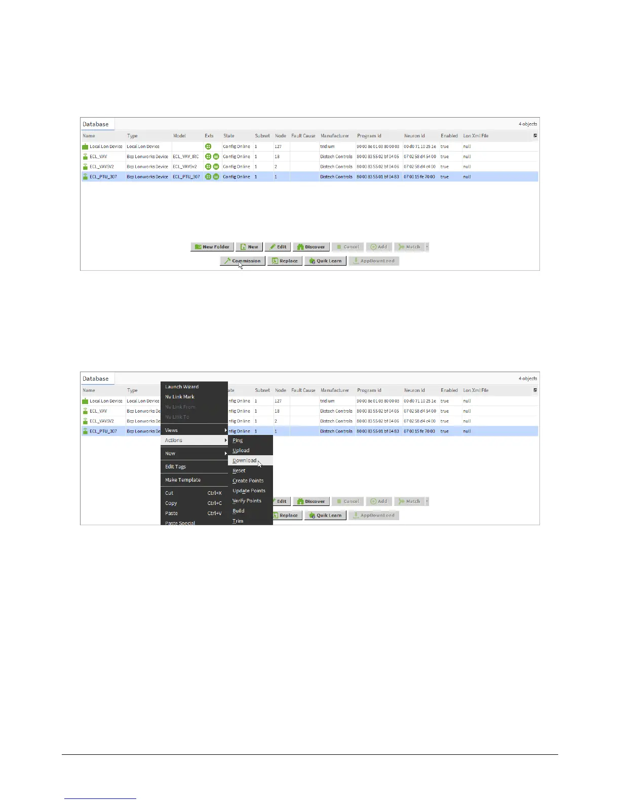 7. Once the devices have been added to the LONWORKS NETWORK, commission the devices: To do so,