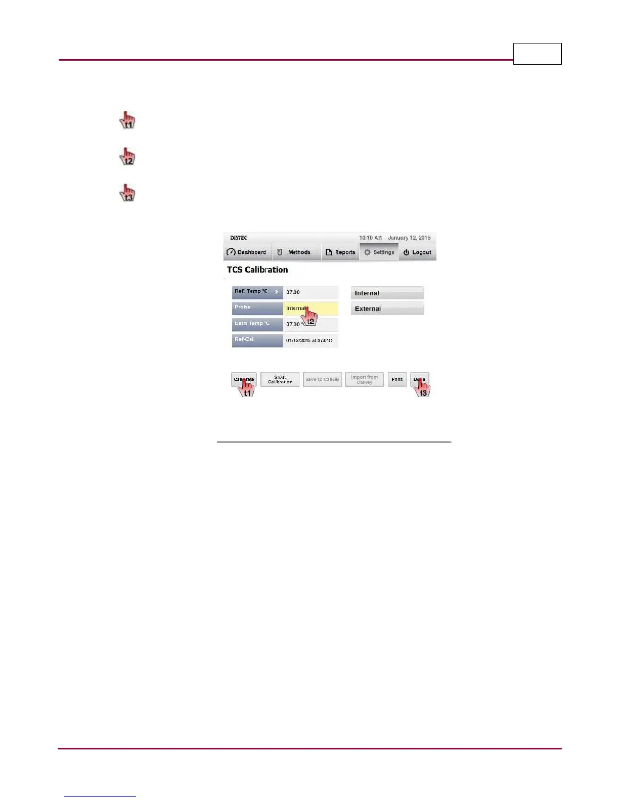 to start the calibration of the TCS internal sensor. Notice that the "