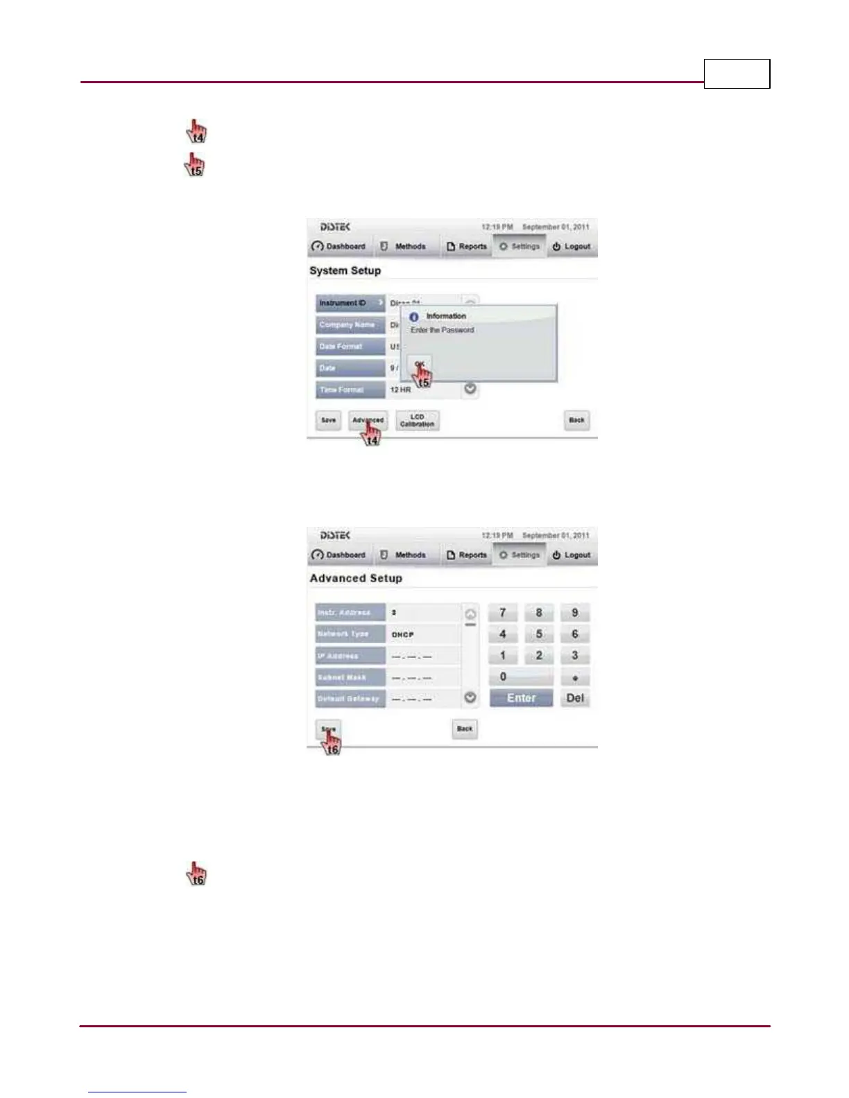 Selecting the Advanced Setup Screen