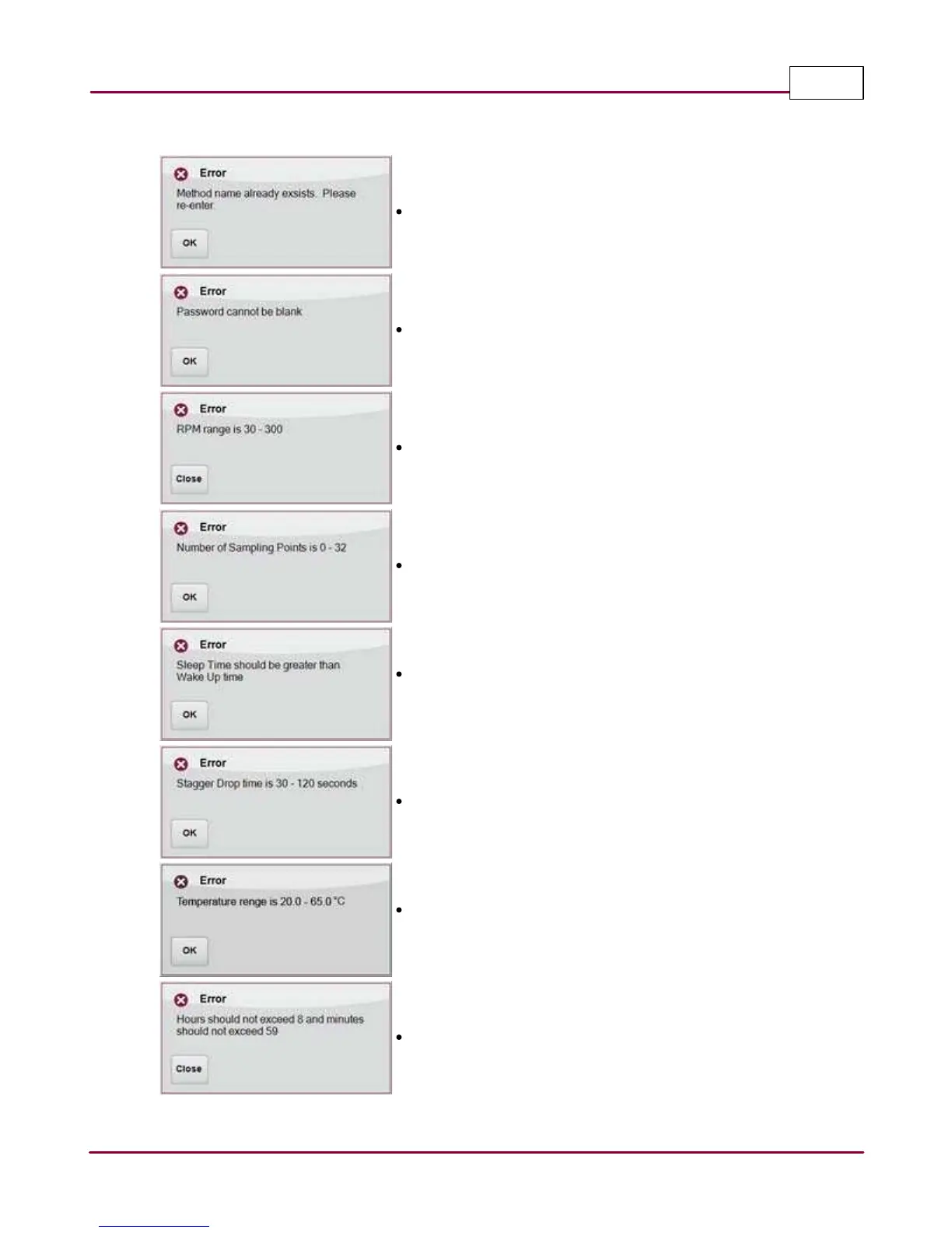 Informs the user about minimum and maximum RPM settings.