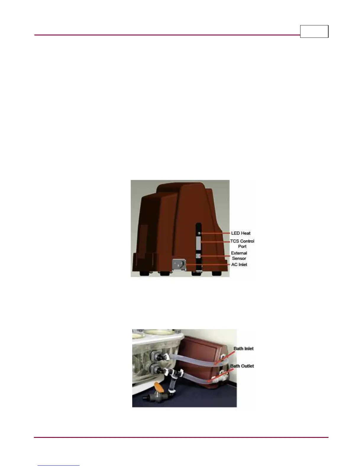 bath inlet (top) tubing to the TCS heater outlet (top). Connect the water bath outlet