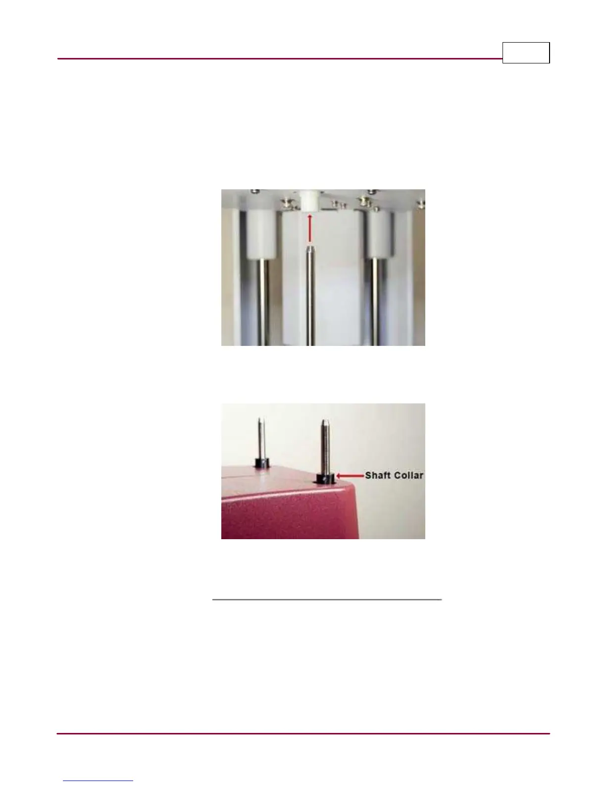 2 Install the shaft collars on the top end of each shaft and leave them loose.