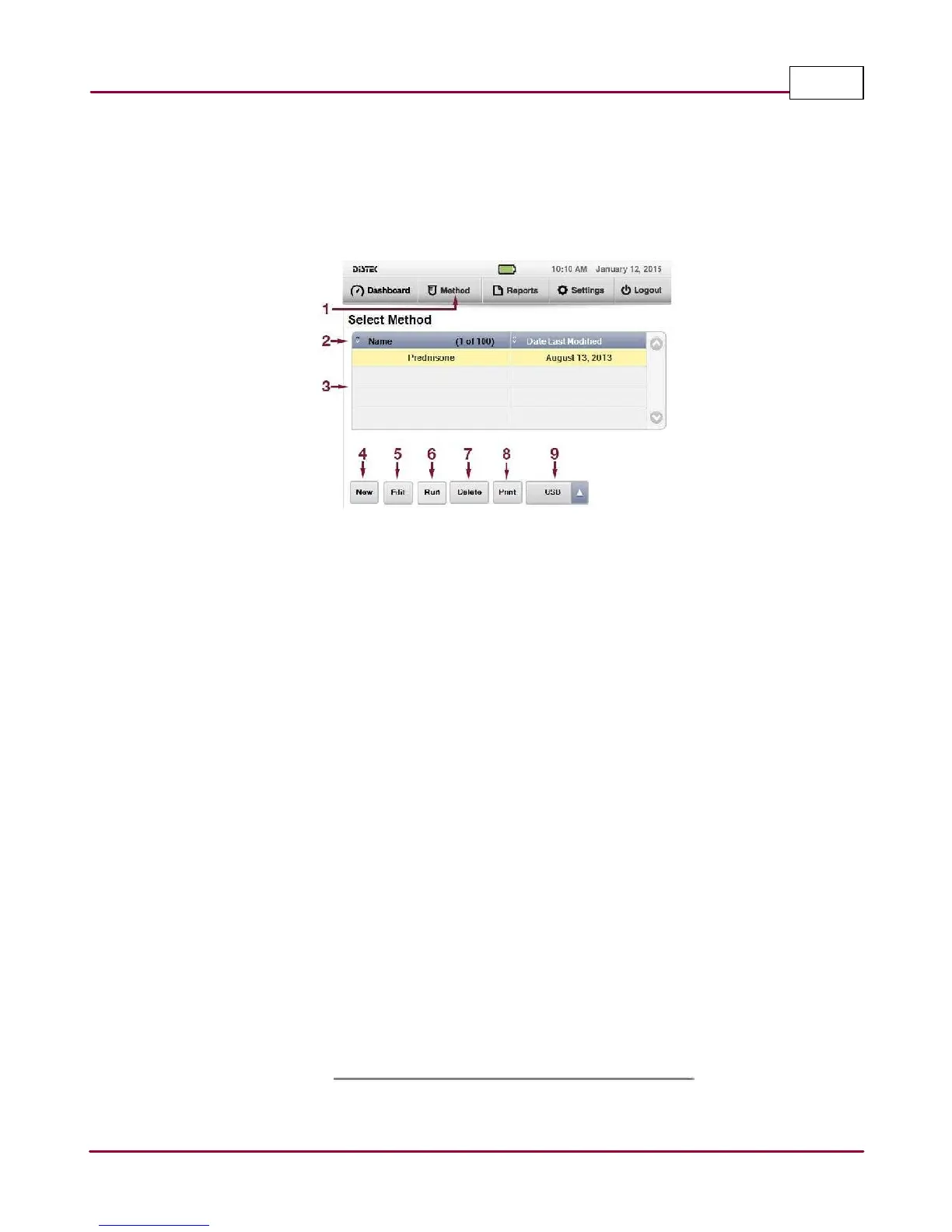 5 View: When selected, user can view or edit the parameters of an existing method.