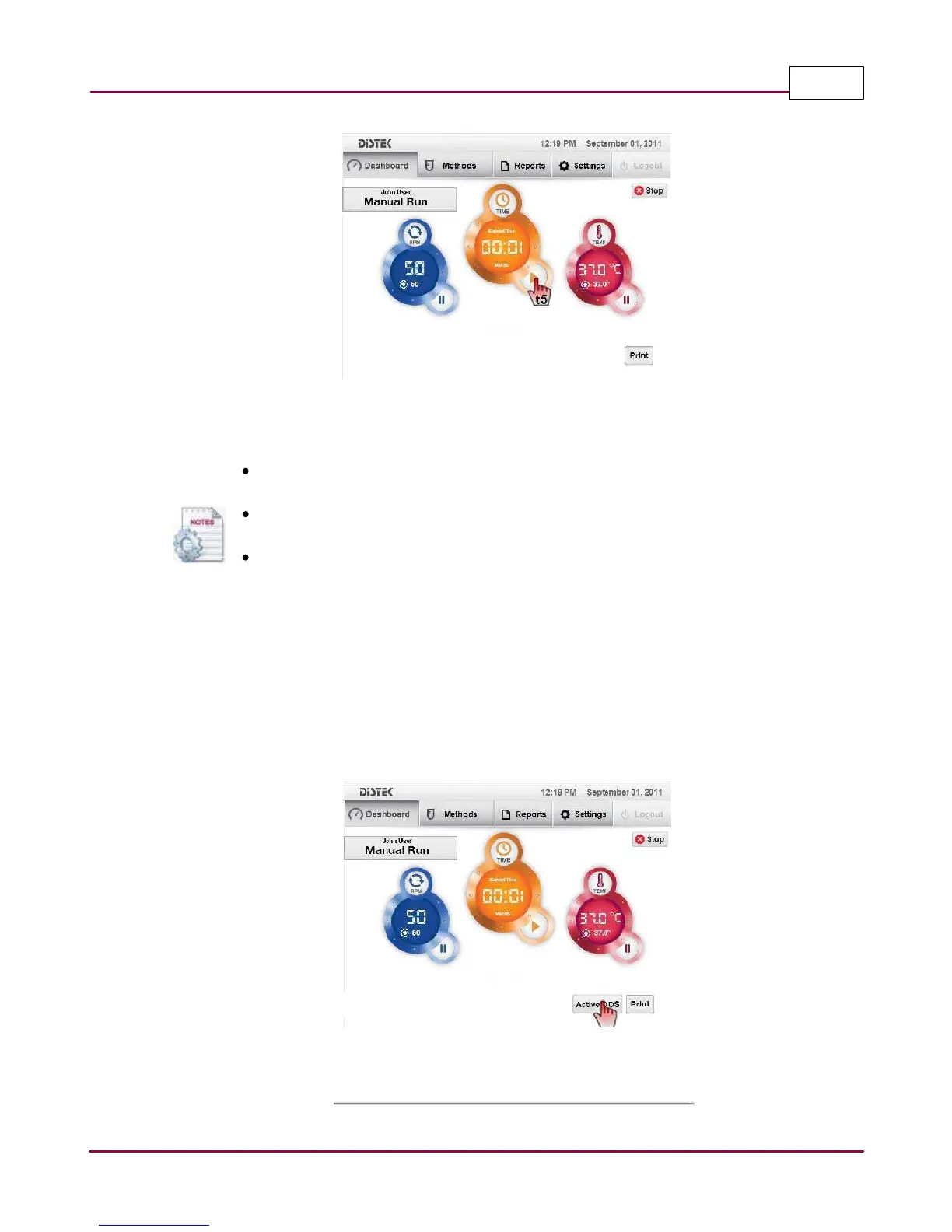 For manual operation of the Dosage Delivery System, the end-user can activate the tablet