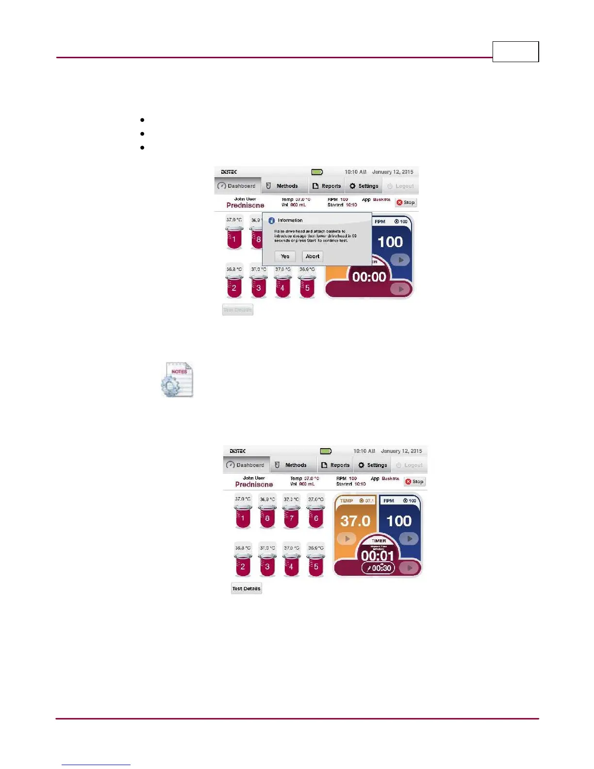 5 Another status window prompts the operator to perform the following: