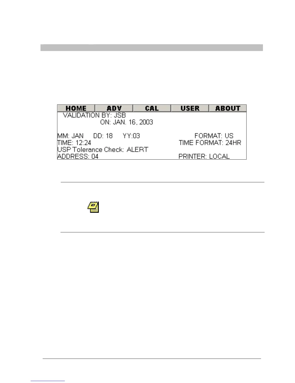 Validation By, Validation Date, Unit Address and TCS address (Evolution 6300