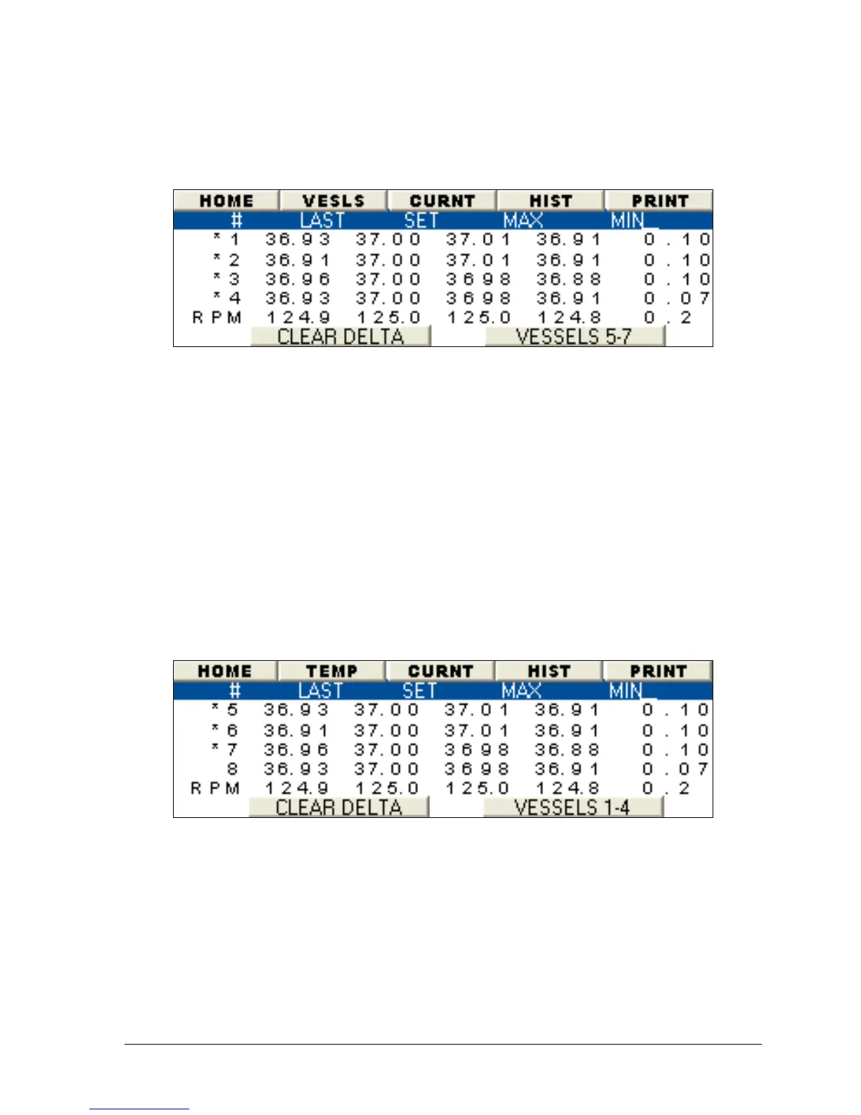 • Selecting the button labeled "Vessel 5-7" will display another temperature and