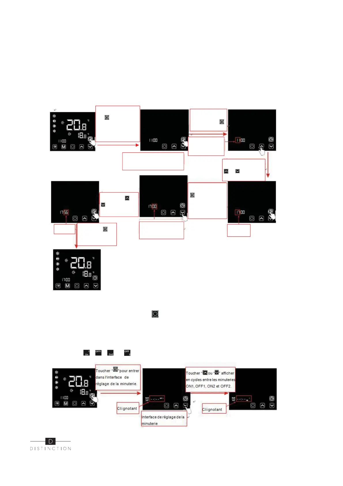6.2.2 Selectioner “ ”, “ ”, “ ” ou “ ” interface de réglage de la minuterie:
