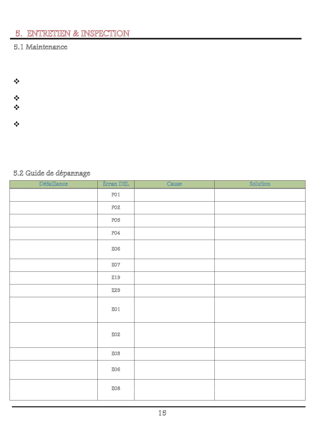 5. ENTRETIEN & INSPECTION