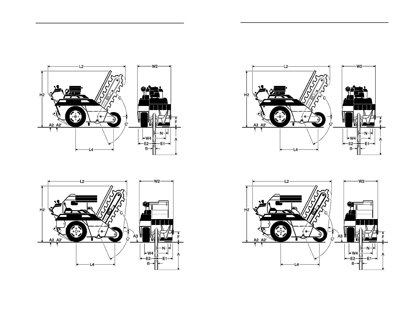 Ditch Witch 1820 - Specifications; Gasoline Engine Dimensions; Diesel Engine Dimensions