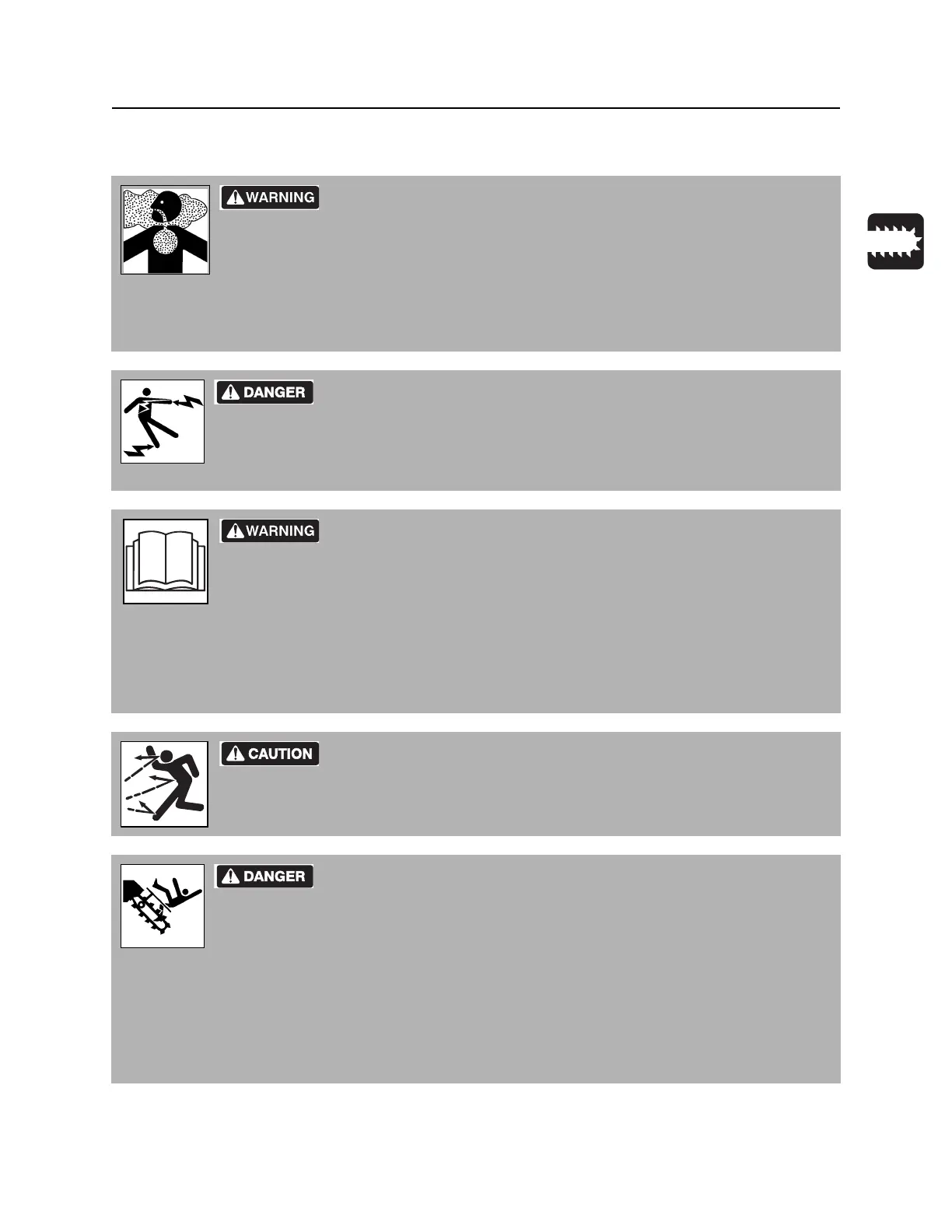 Moving digging teeth will cause death or serious injury. Stay away.