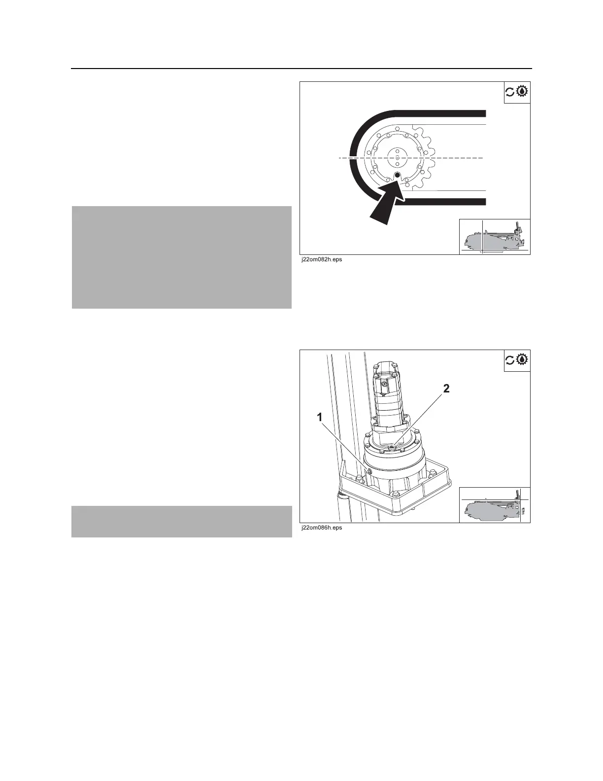 2. Drain oil at gearbox oil drain (1). Replace drain
