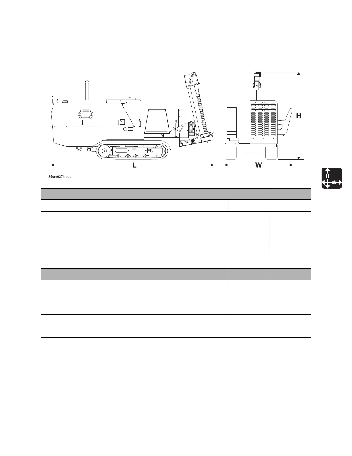 L, overall machine length 117 in 3 m
