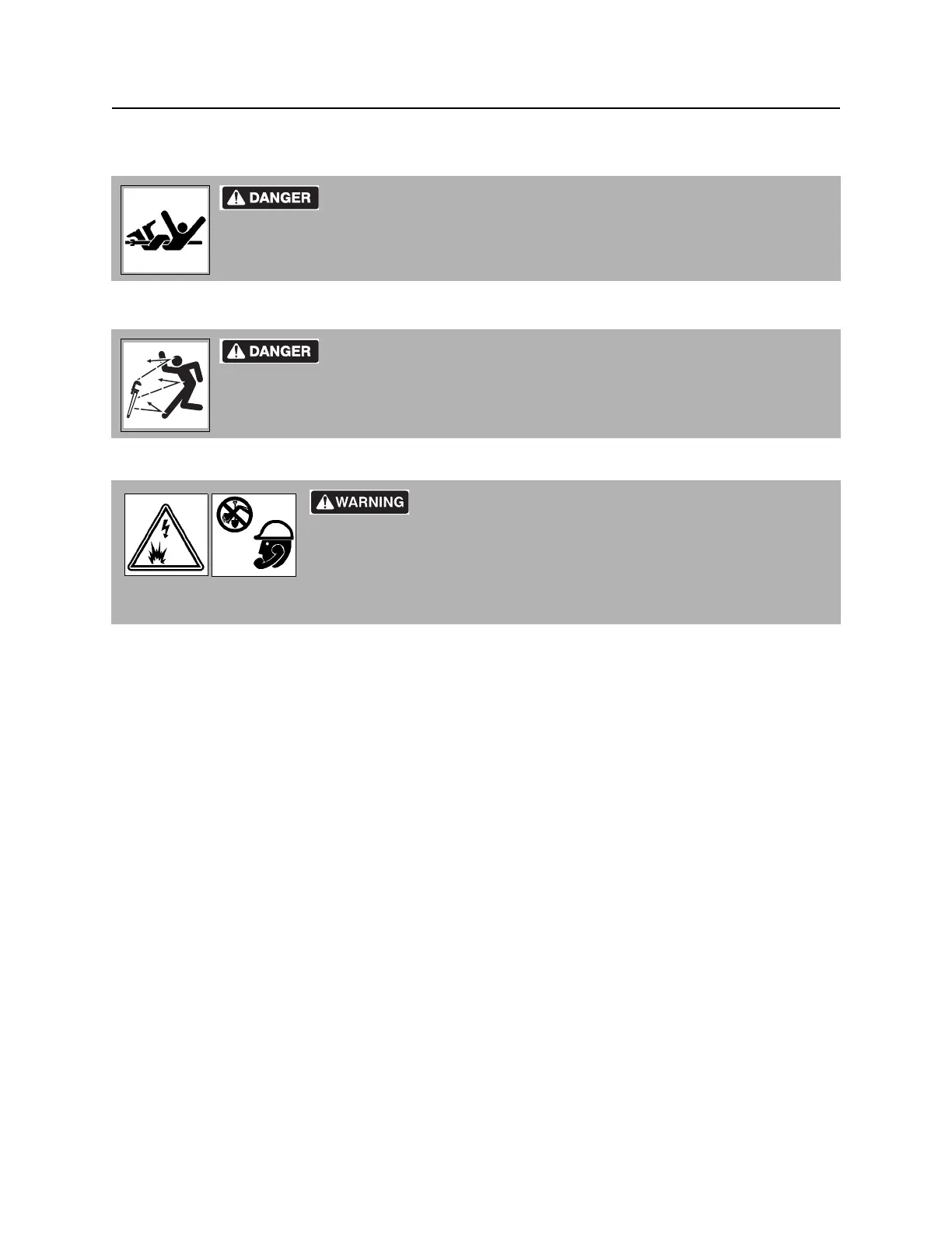 be struck by moving or thrown tools. Never use pipe wrenches on drill string.
