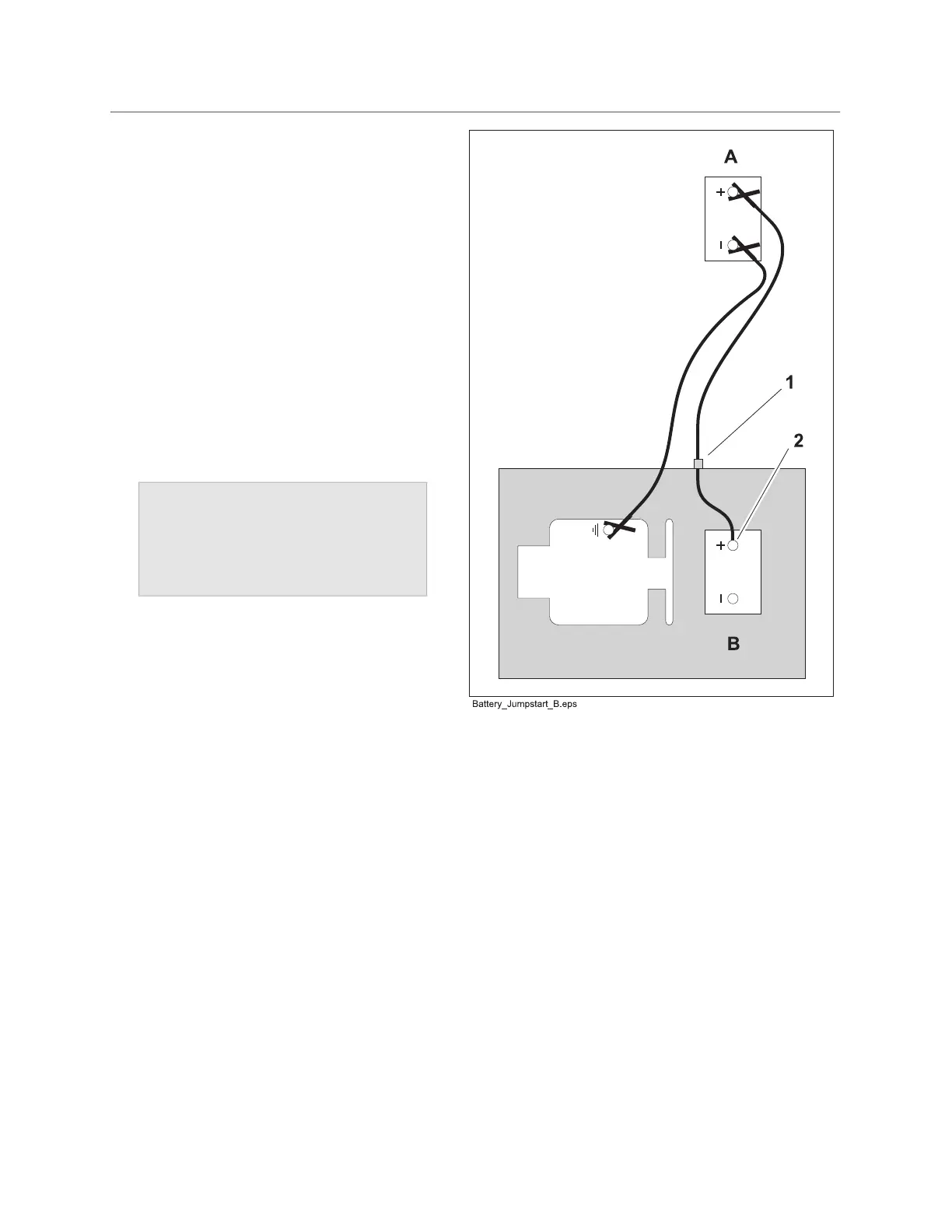 12. Remove jumper cables from service vehicle, black negative (-) clamp first. Do not allow clamps to