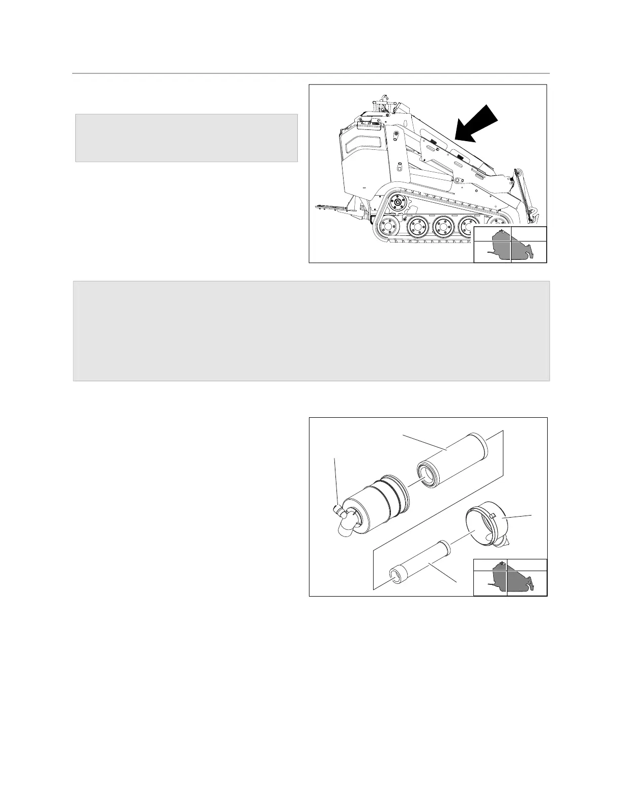 NOTICE: Only open air filter housing when red band on indicator is visible. Change the elements. Do