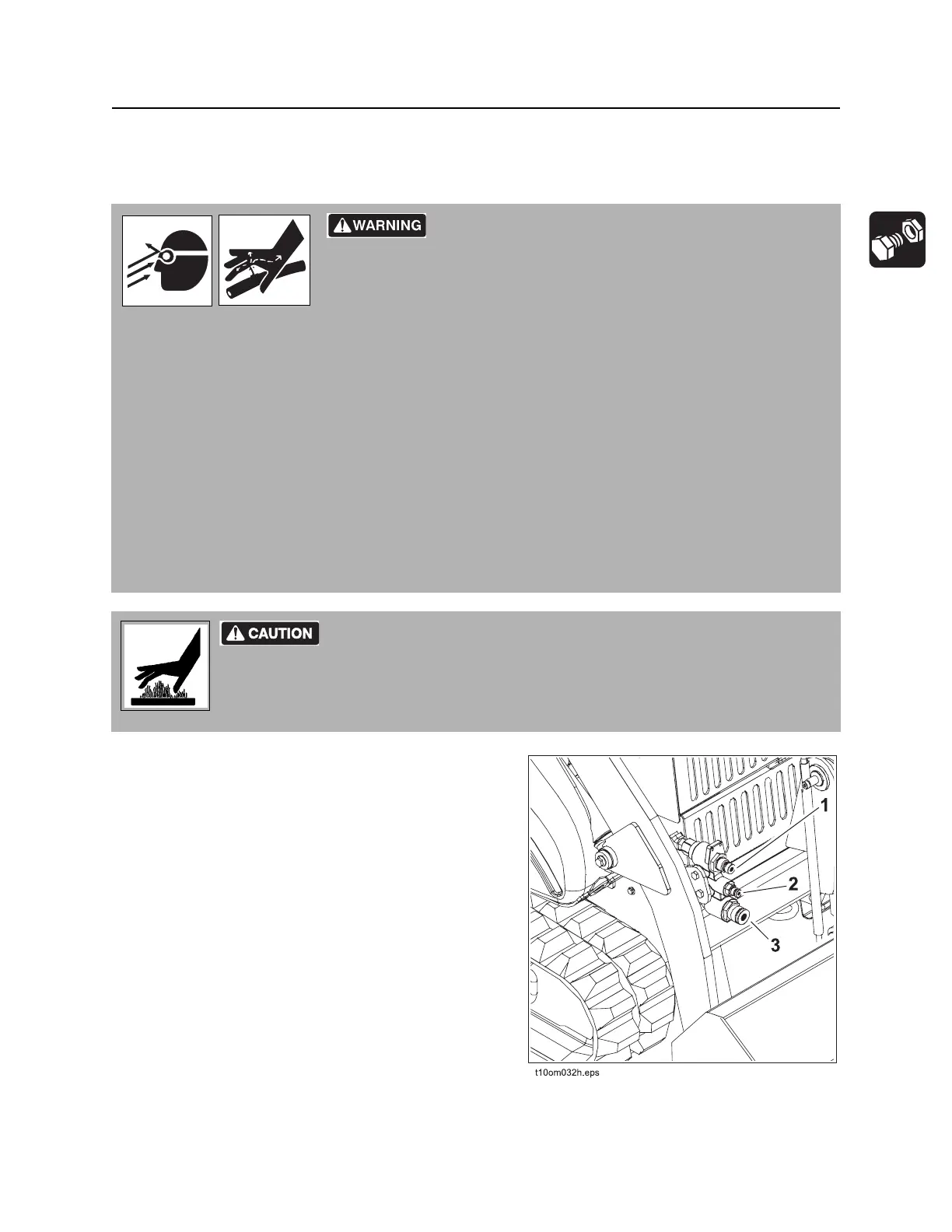 • Before disconnecting a hydraulic line, turn engine off and operate all controls to relieve pressure.