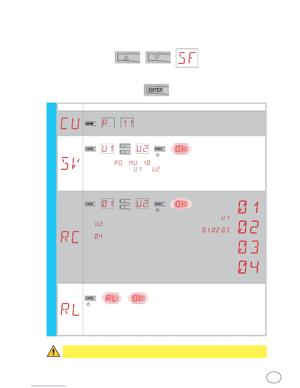 WARNING: if more than 100 remote control codes are stored on the control