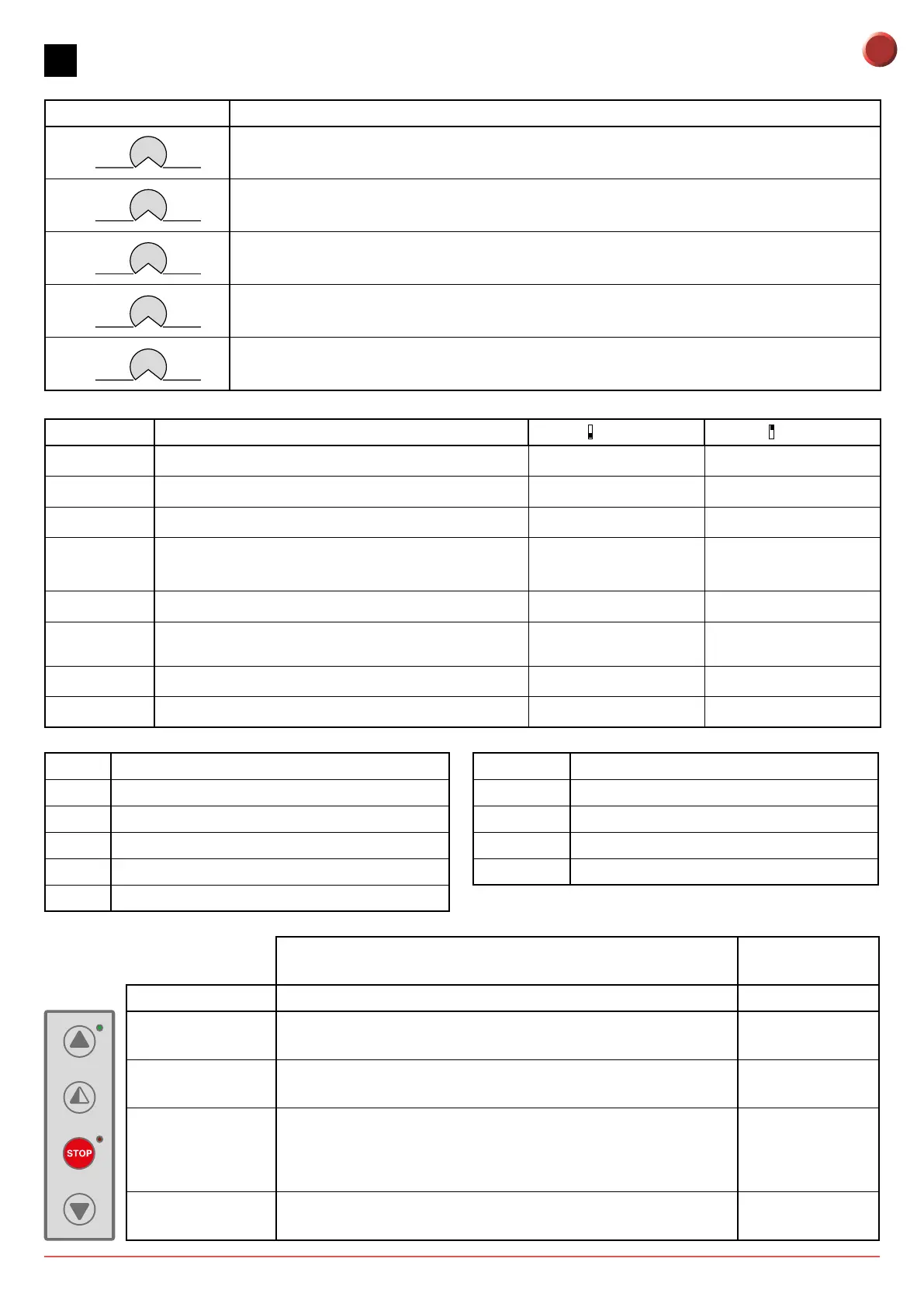 - The red LED on indicates that the STOP has been activated.