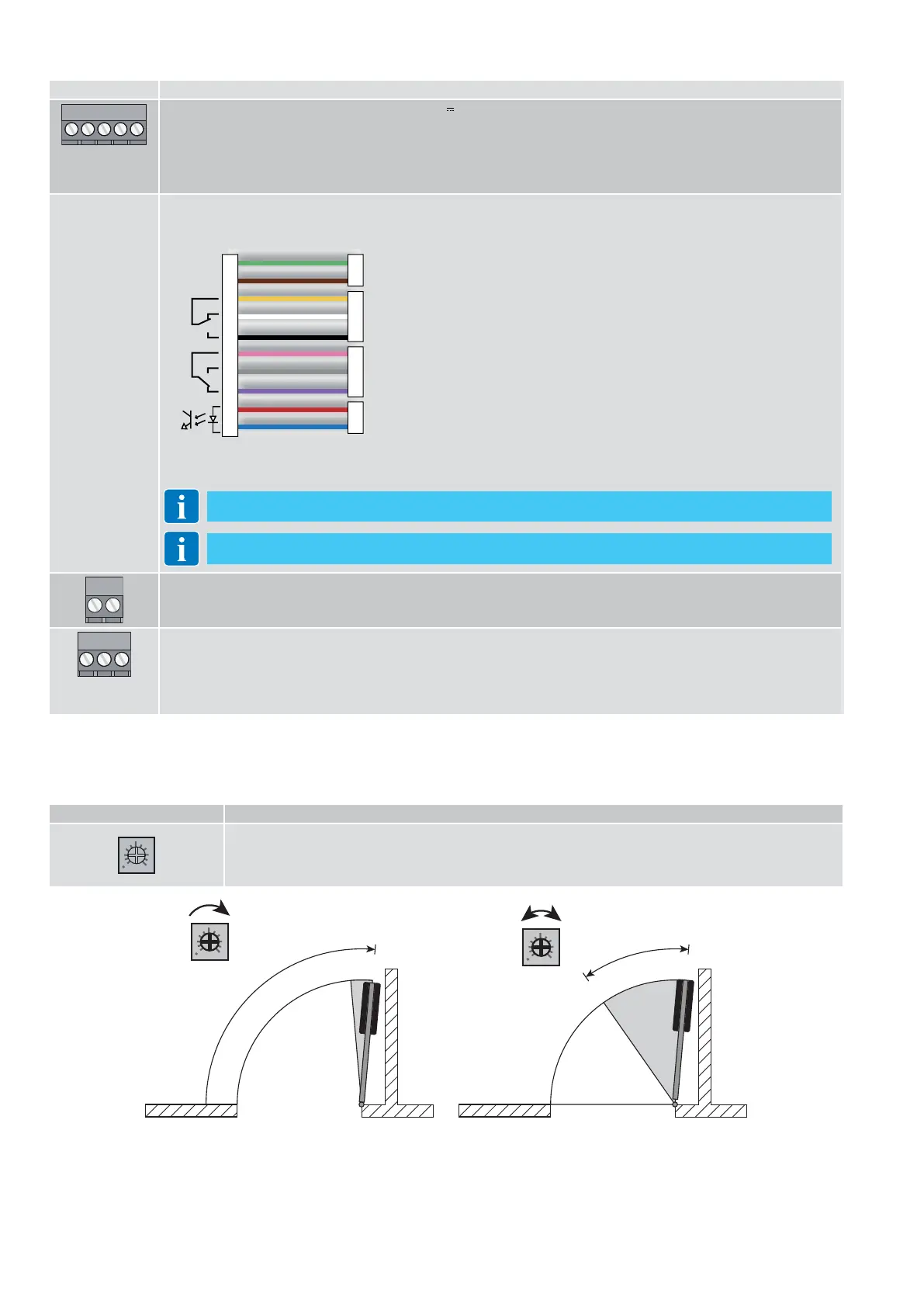 Adjustment of the opening safety exclusion (blanking), from 45° to fully open.