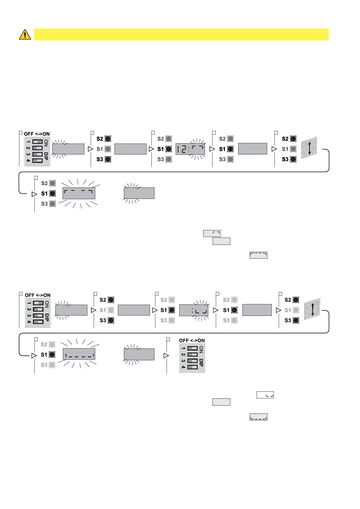 1. With the DIP1 of the S4 switch in ON and the PARAMETER field still blinking