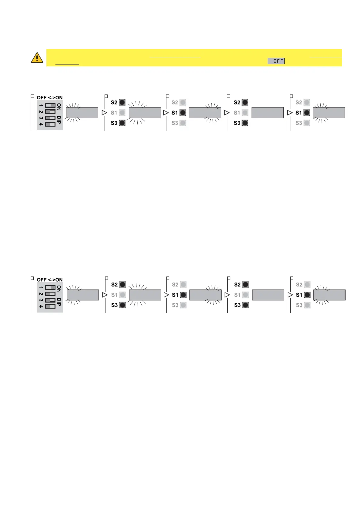 1. Put DIP 1 (S4) in ON position, PARAMETER digits start blinking
