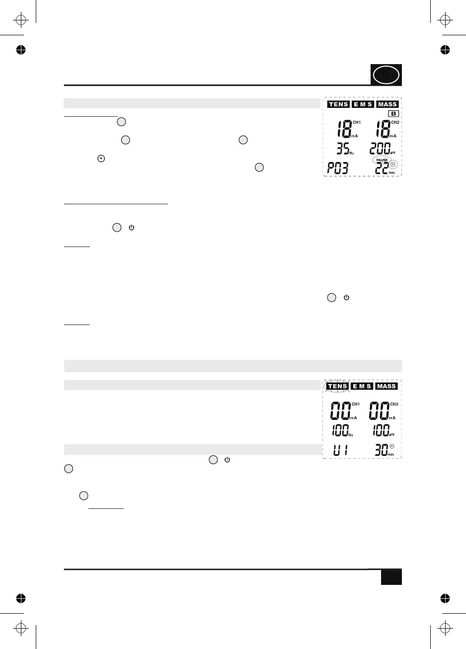 TENS mode and 9 adjustable user programmes in the EMS mode.