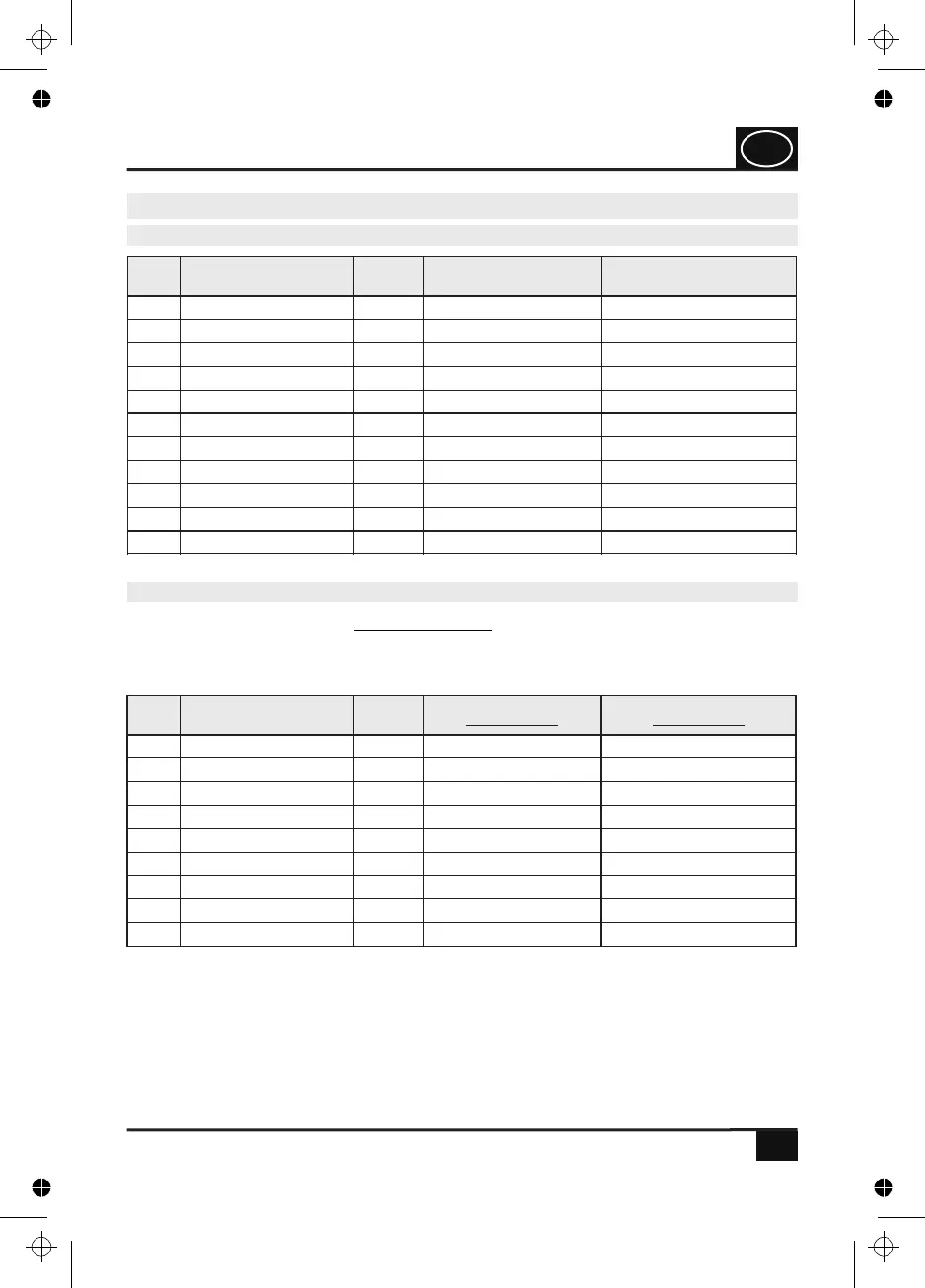 The values shown in the table are factory preset and can be set in the following ranges: