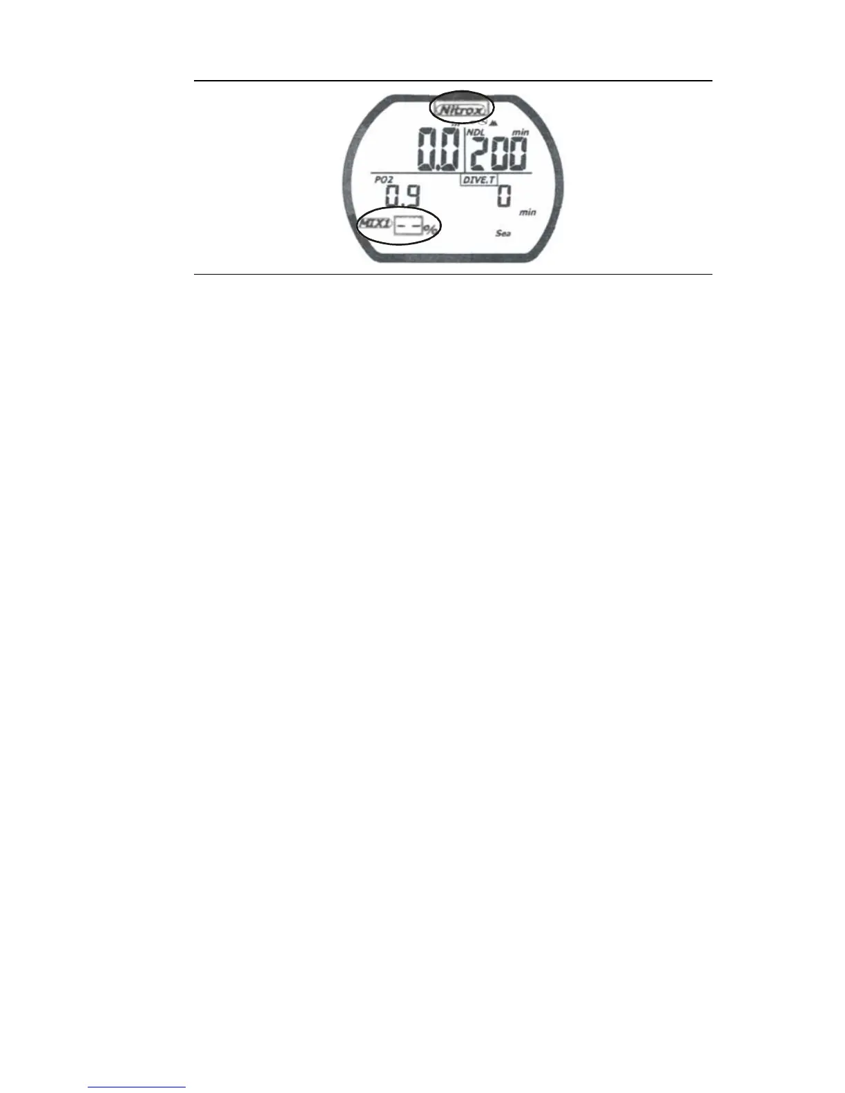 When the computer is in FO2 default mode, the Nitrox symbol