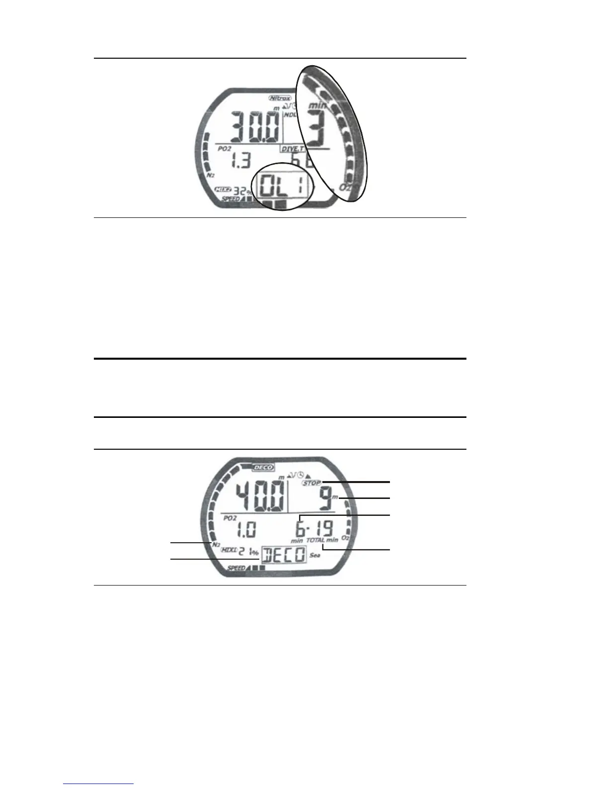 decompression mode. An audible alarm sounds for three seconds