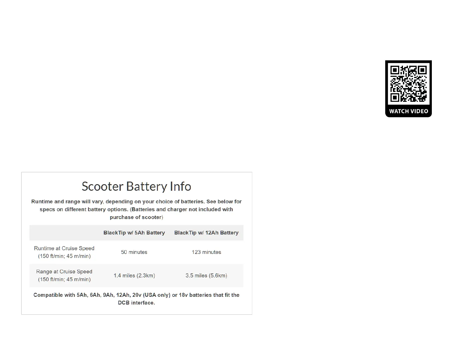 The DPV accepts any DCB-type power tool batteries. In the USA, these are commonly called 20v Max, whereas in Europe they are known as