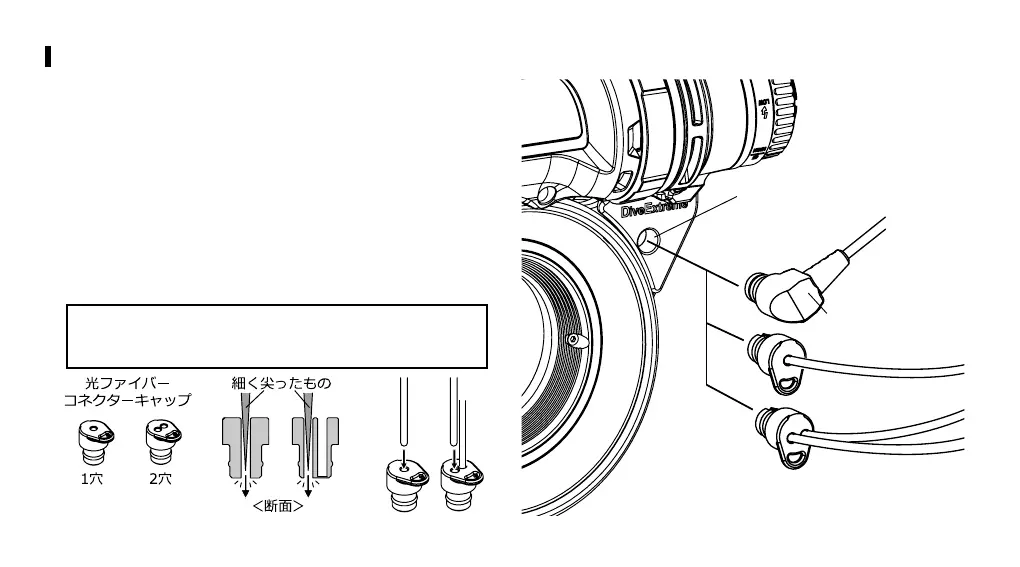 は付属の 光ファイバーコネクターキャップにファイバーを差し
