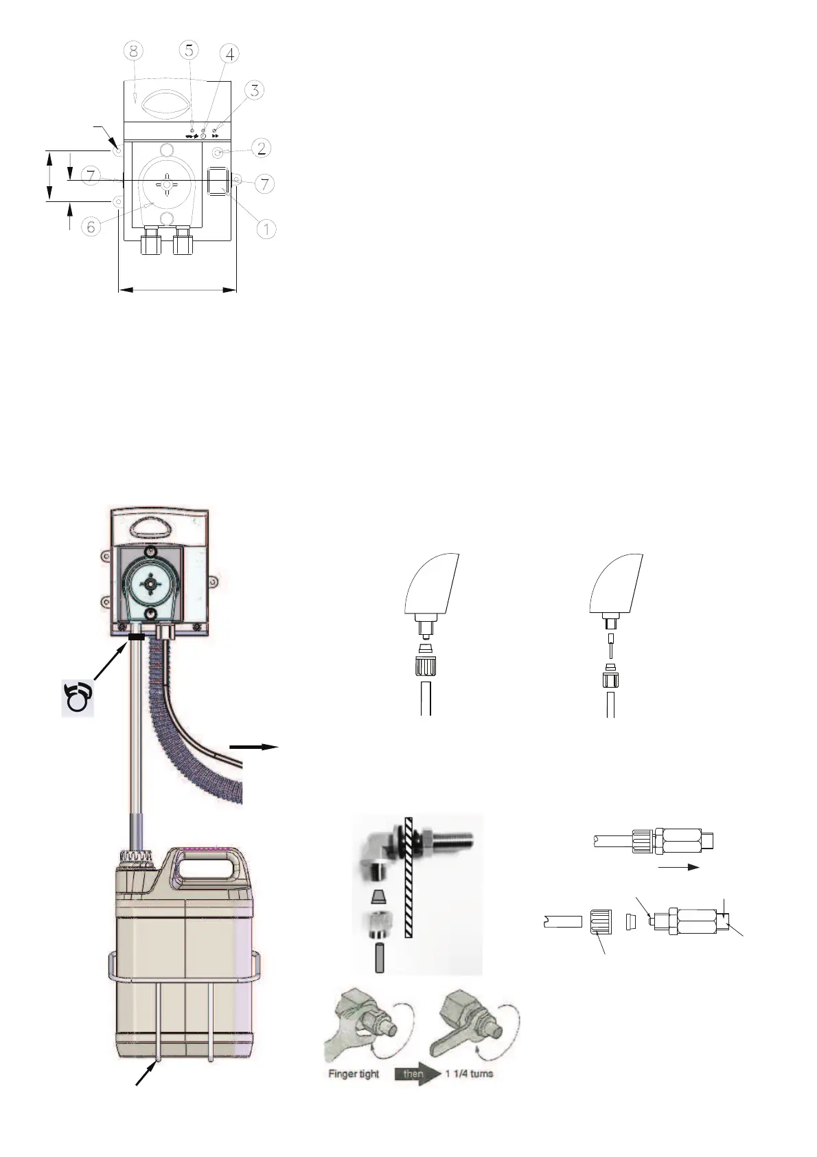 - Utilizar tubos de pe. Ø6 mm. para la bomba de detergente y tubos de pe. Ø4 mm. para la bomba de abrillantador.