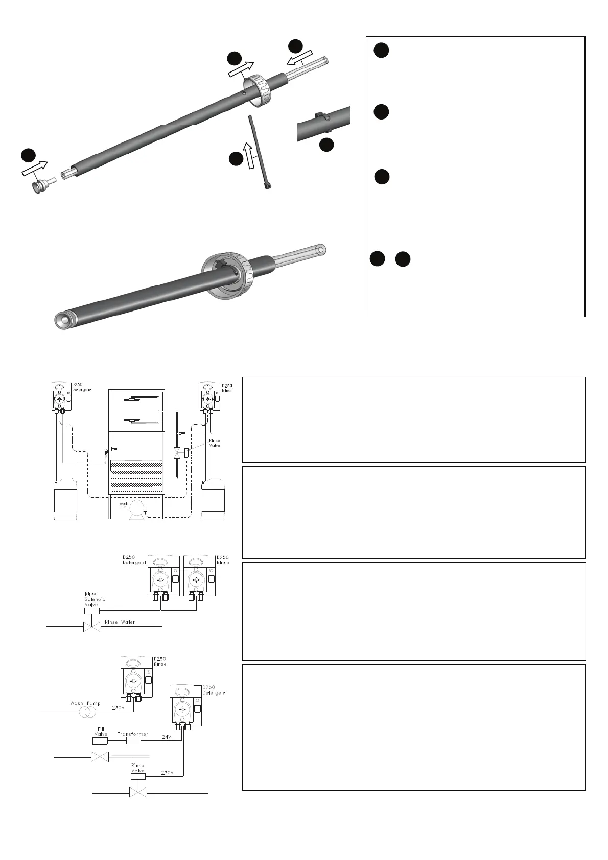 Fig.2 - timed dosing of detergent and rinse into pressure line. Single power feed going to both