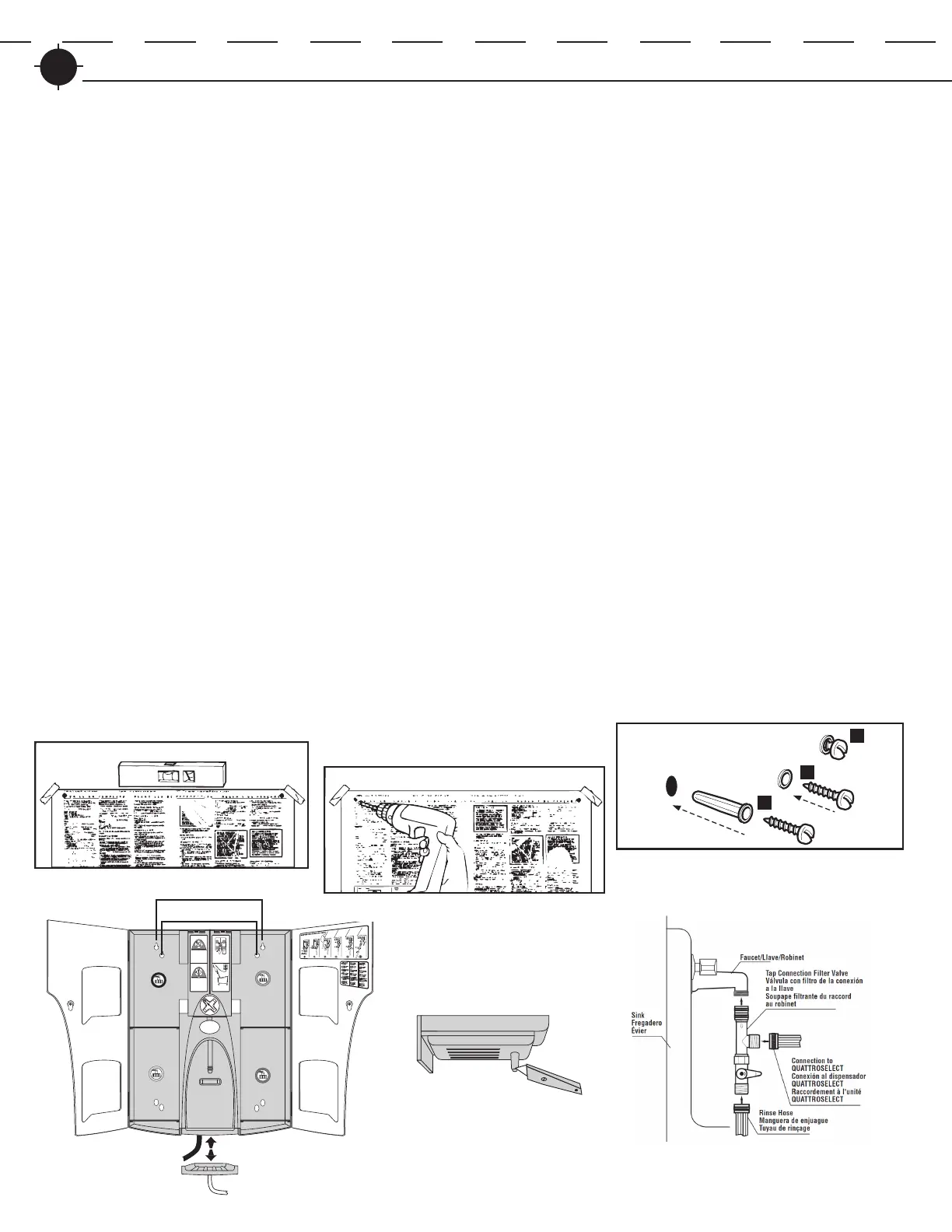 ▼ POSITION DOTTED LINE 66” (168 cm) FROM THE FLOOR - DRILL HOLES 16” APART ▼ COLOQUE LA LÍNEA DE PUNTOS A 168 cm (66”) DEL PISO