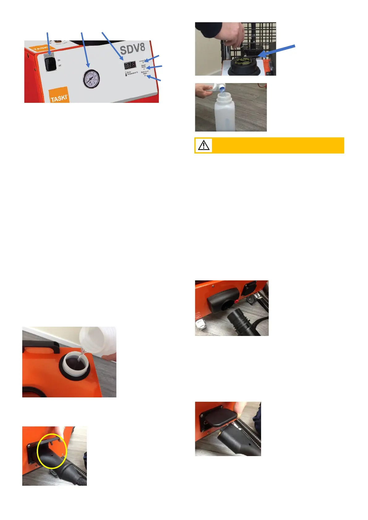 точке подключения моющего средства (3) на