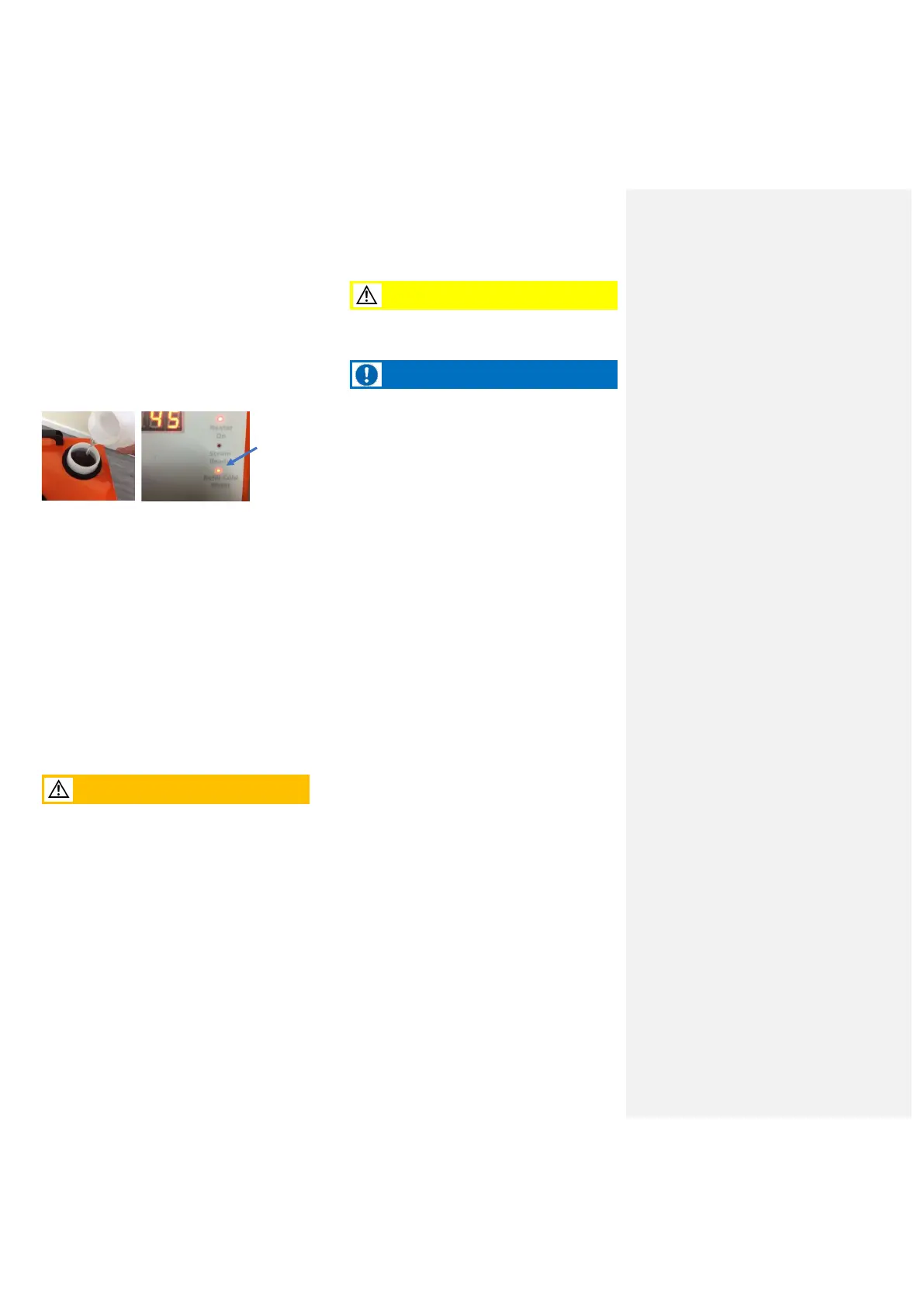 Refill the cold water tank (1) when the refill cold