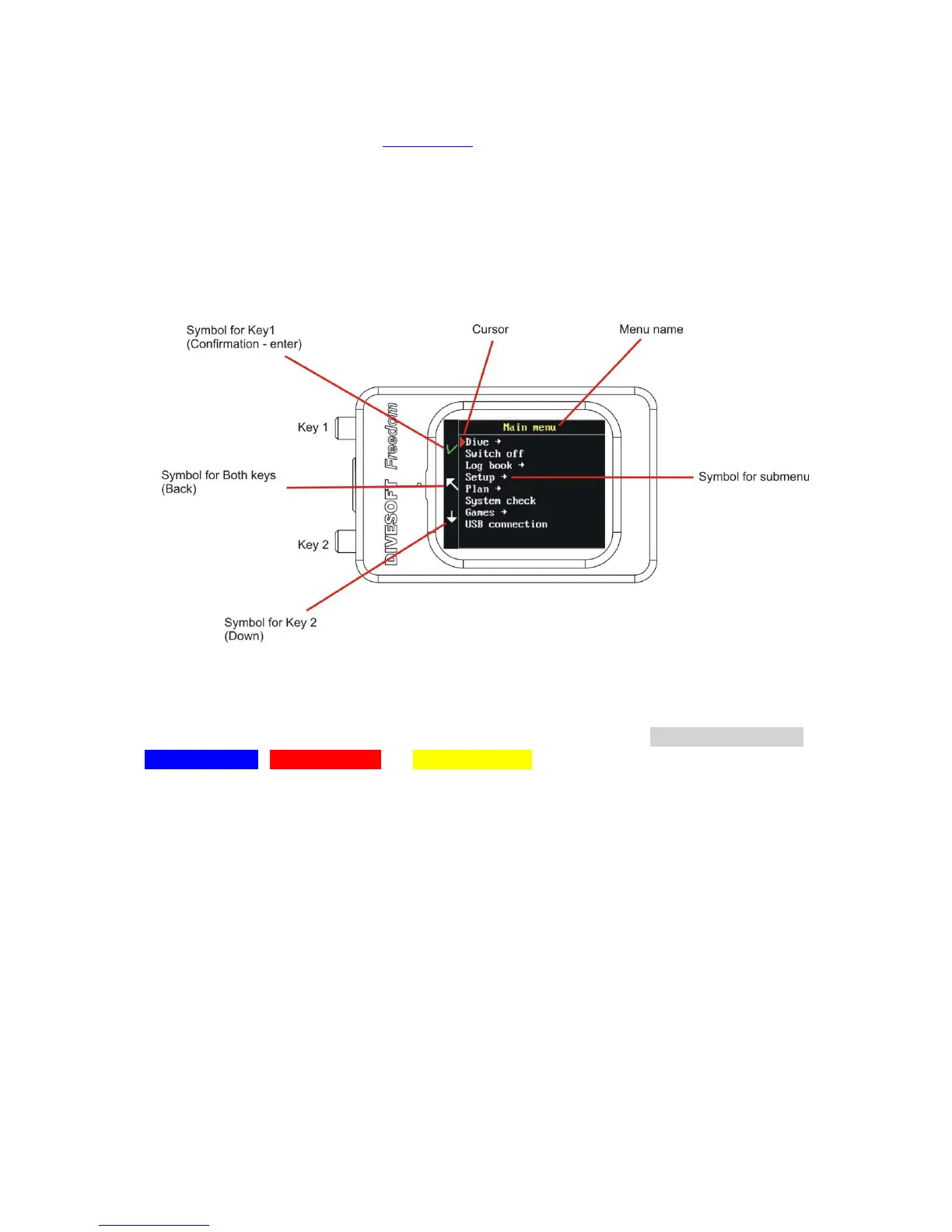 For basic menu control Key symbols are placed in the left column on the display. See the illustration