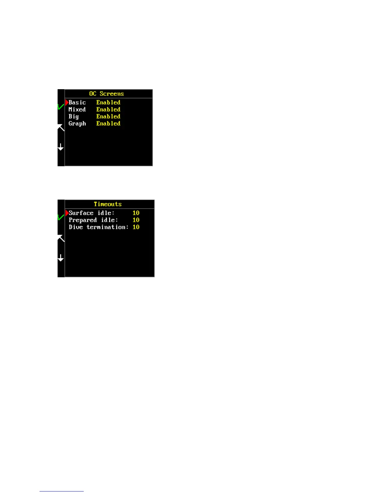 Prepared idle – set a period for switch-off after inactivity in dive mode before the dive. Range 1 –